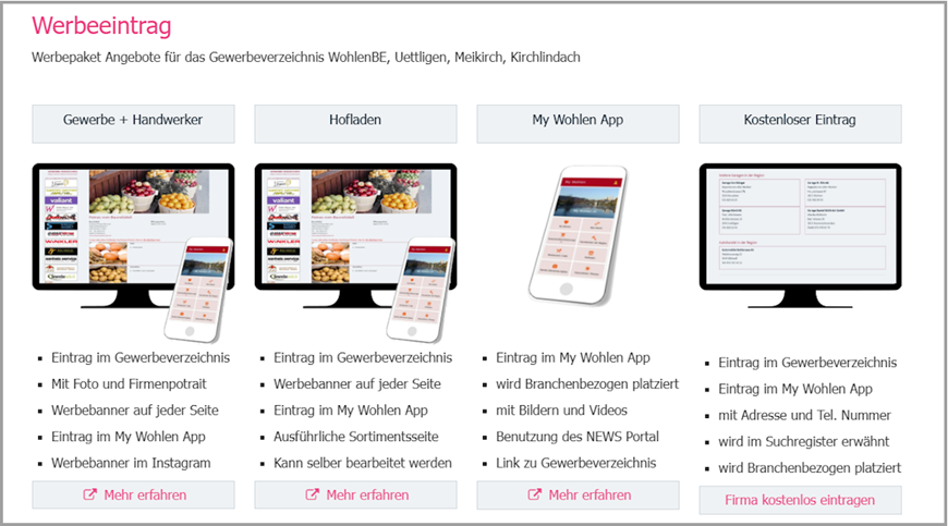 - Erstellen & Support Gewerbeverzeichnis Wohlen